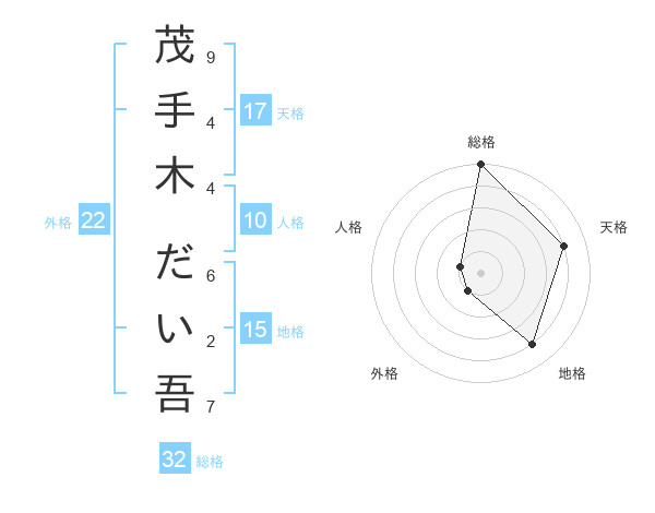 茂手木 だい吾さんの天格は17画の4点!