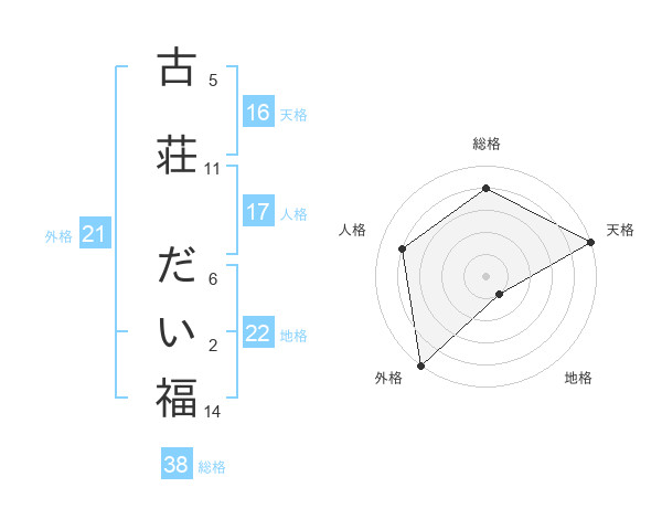 古荘 だい福さんの総格は38画の4点!