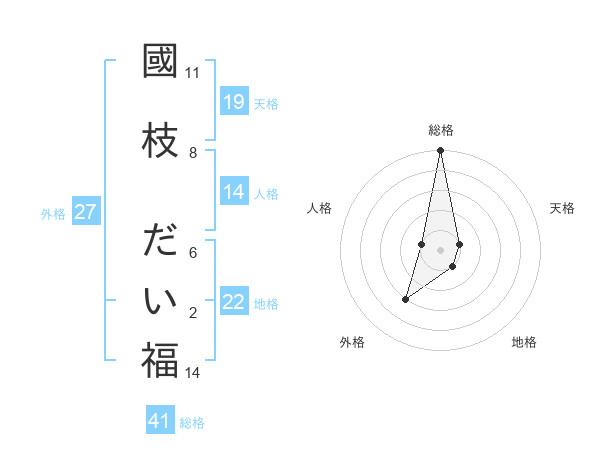 國枝 だい福さんの総格は41画の5点!