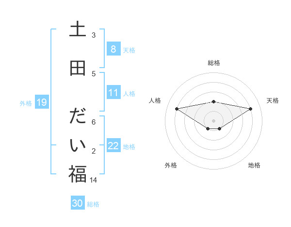 占い結果は姓名判断である以上、良い場合も悪い場合もありますが、決してお名前を誹謗中傷するものでなく、画数の自動計算によって得られたものです。また、本サイトの検索によって得られた鑑定結果で、第三者を誹謗中傷したり名誉を棄損するような行為を禁じます。