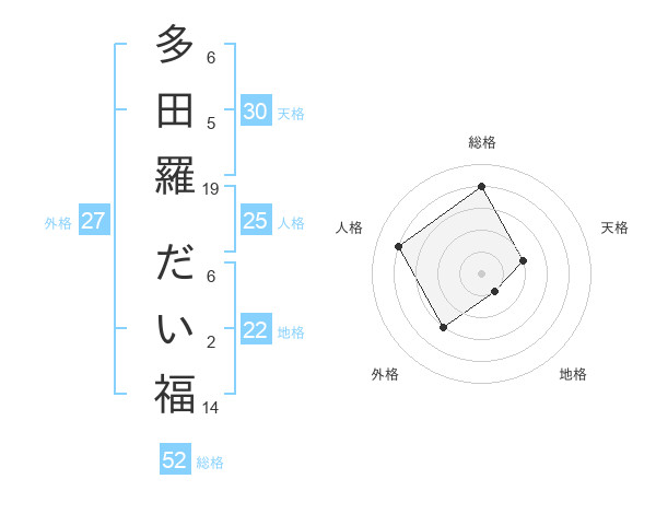 多田羅 だい福さんを姓名の画数から五運を鑑定