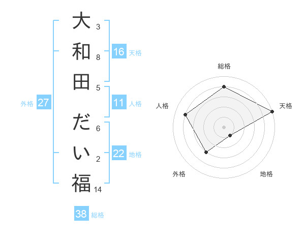 大和田 だい福さんを姓名の画数から五運を鑑定