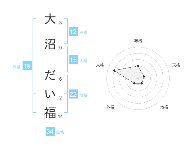 大沼 だい福さんを姓名の画数から五運を鑑定