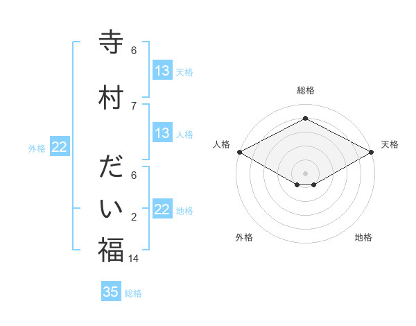 寺村 だい福さんの天格は13画の5点!