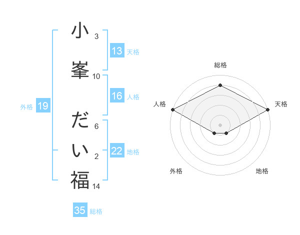 小峯 だい福さんを姓名の画数から五運を鑑定