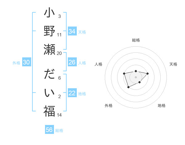小野瀬 だい福さんを姓名の画数から五運を鑑定