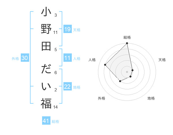 小野田 だい福さんを姓名の画数から五運を鑑定