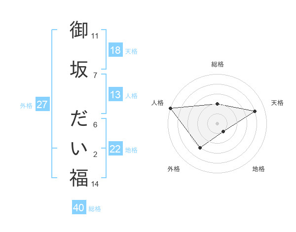 御坂 だい福さんを姓名の画数から五運を鑑定