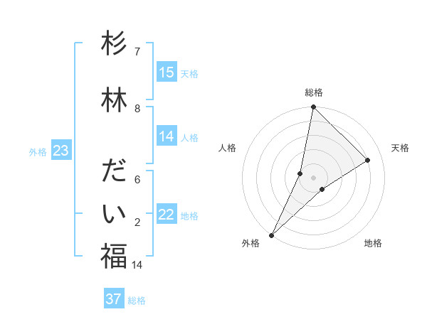 杉林 だい福さんを姓名の画数から五運を鑑定