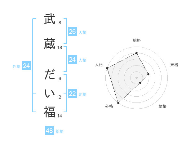 武蔵 だい福さんを姓名の画数から五運を鑑定