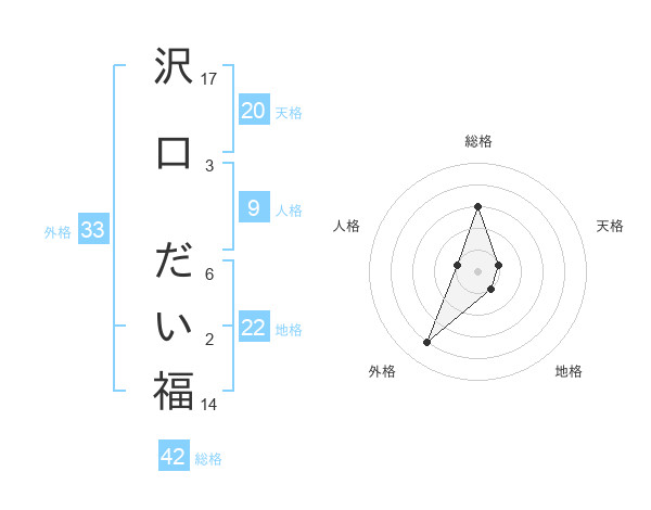 沢口 だい福さんの外格は33画の4点!