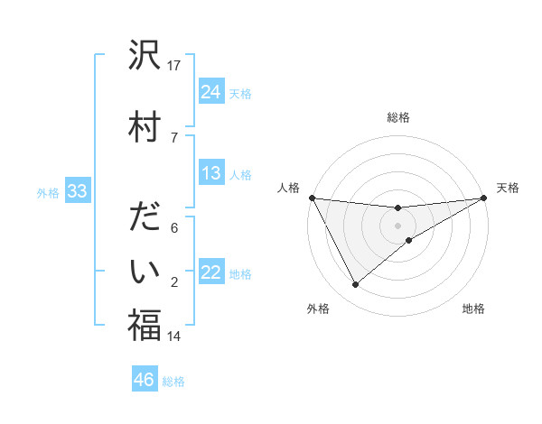 沢村 だい福さんの外格は33画の4点!