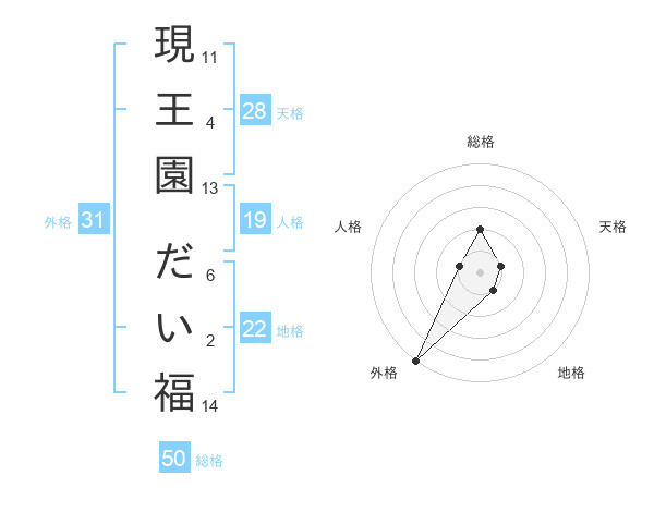 現王園 だい福さんを姓名の画数から五運を鑑定