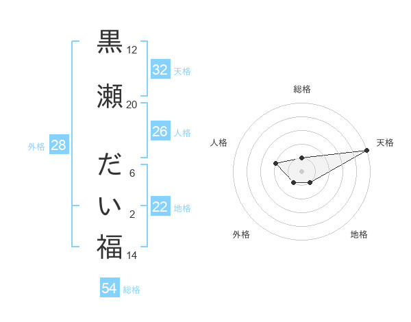 黒瀬 だい福さんを姓名の画数から五運を鑑定