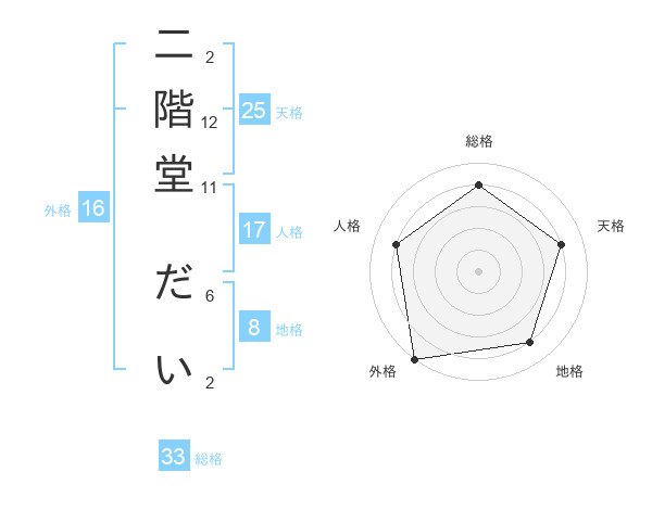 二階堂 だいさんを姓名の画数から五運を鑑定