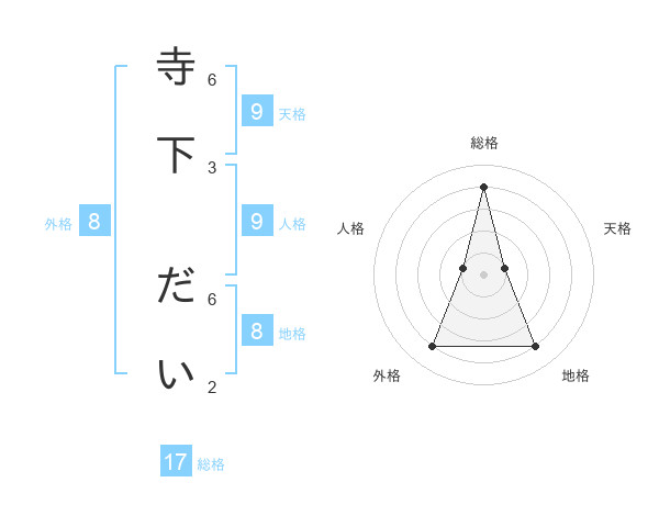 寺下 だいさんの総格は17画の4点!