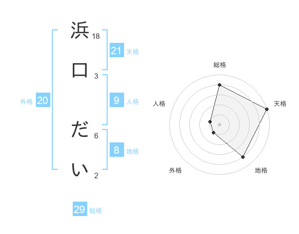 浜口 だいさんの総格は29画の4点!