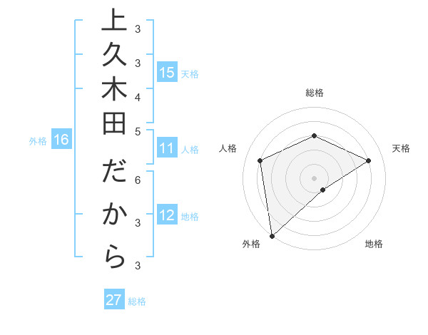 上久木田 だからさんを姓名の画数から五運を鑑定