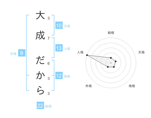 大成 だからさんの総格は22画の1点!