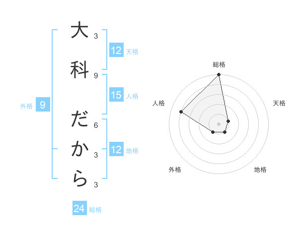 大科 だからさんの総格は24画の5点
