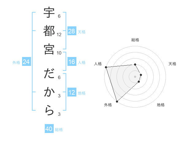 宇都宮 だからさんの総格は40画の2点!