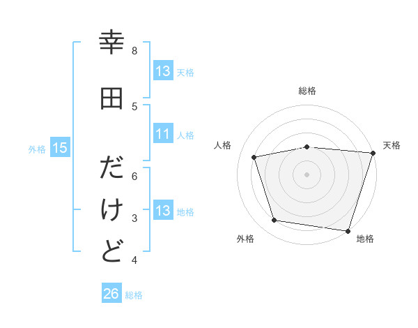 幸田 だけどさんを姓名の画数から五運を鑑定
