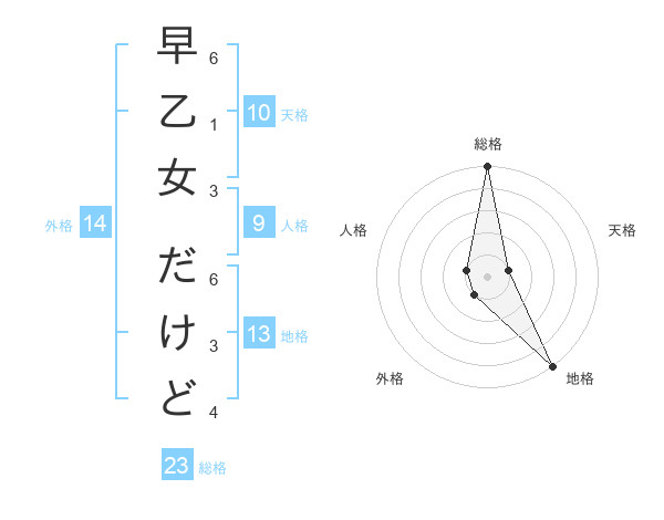 早乙女 だけどさんの総格は23画の5点!