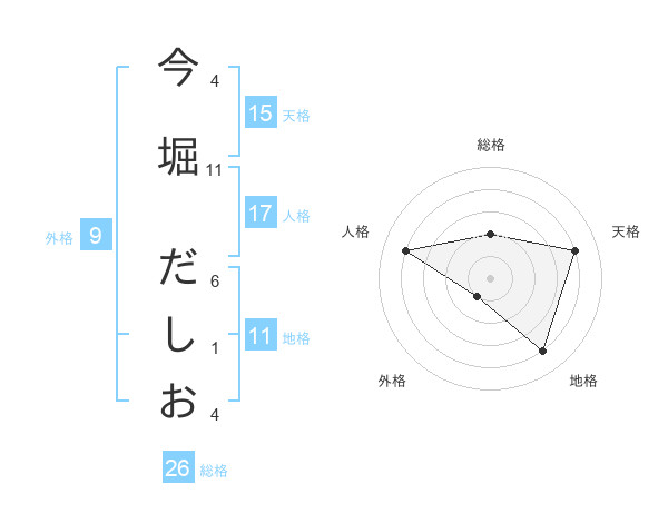 今堀 だしおさんの総格は26画の2点!
