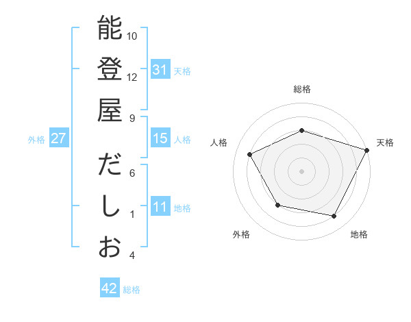 能登屋 だしおさんを姓名の画数から五運を鑑定