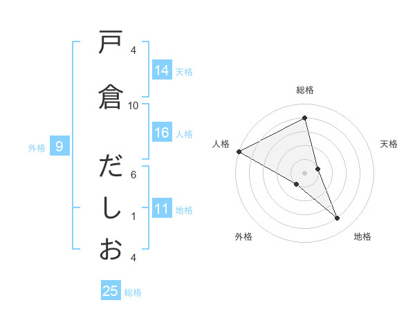 戸倉 だしおさんの地格は11画の4点!