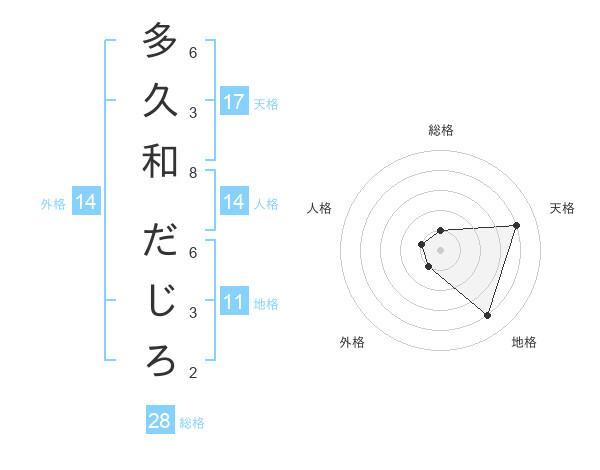 多久和 だじろさんの天格は17画の4点!
