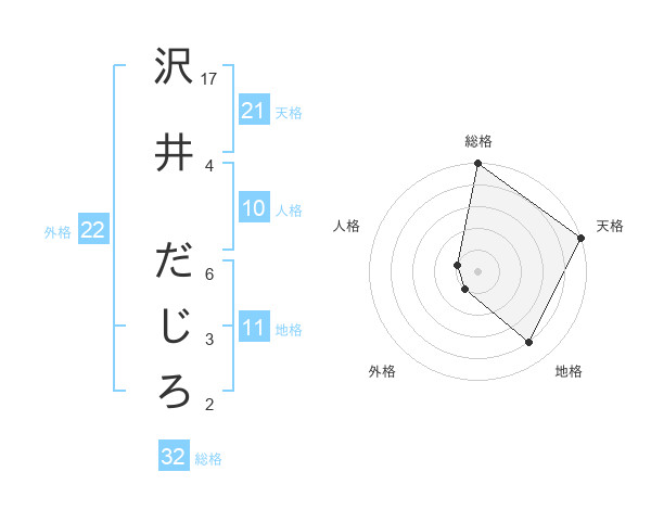 沢井 だじろさんを姓名の画数から五運を鑑定