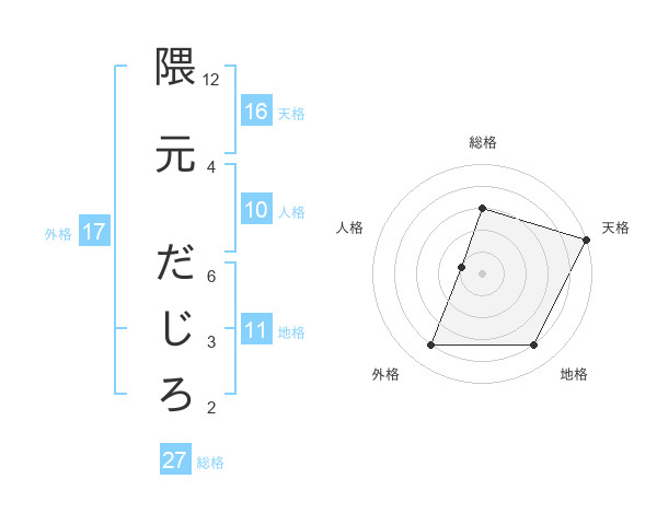 隈元 だじろさんの総格は27画の3点!