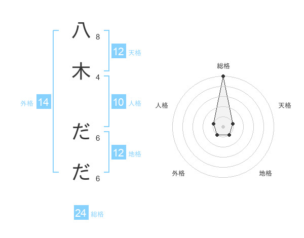 八木 だださんの総格は24画の5点!