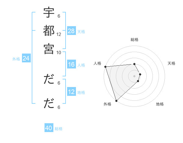 宇都宮 だださんを姓名の画数から五運を鑑定