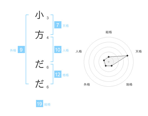 小方 だださんの総格は19画の1点!