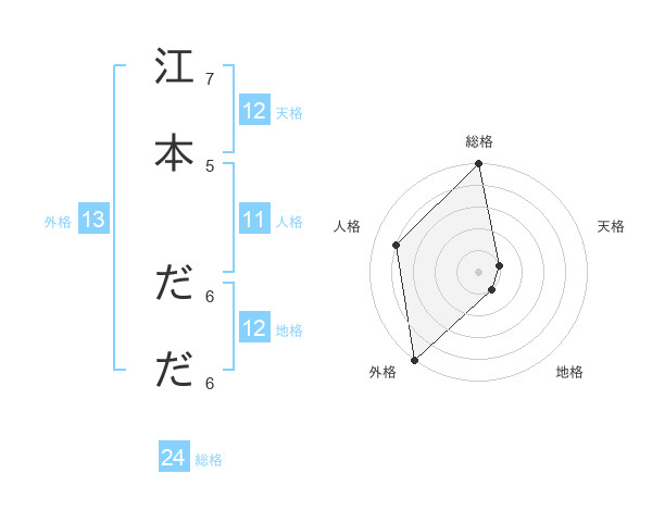 江本 だださんの外格は13画の5点!