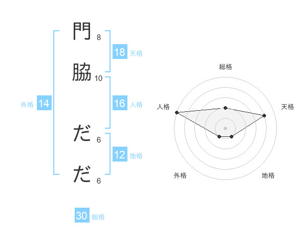 門脇 だださんの総格は30画の2点!