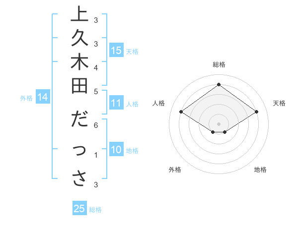 上久木田 だっささんを姓名の画数から五運を鑑定