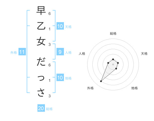 早乙女 だっささんを姓名の画数から五運を鑑定