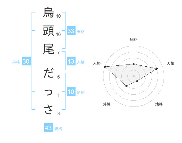 烏頭尾 だっささんの総格は43画の2点