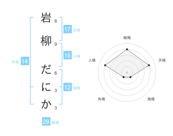 岩柳 だにかさんを姓名の画数から五運を鑑定