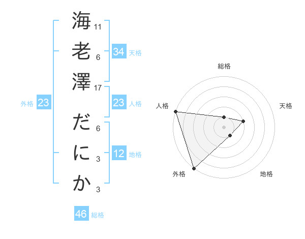 海老澤 だにかさんを姓名の画数から五運を鑑定
