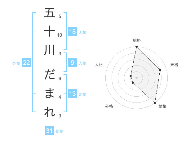 五十川 だまれさんの総格は31画の5点!