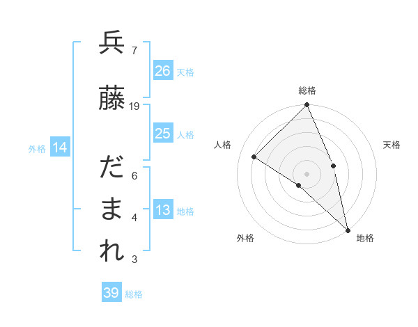 兵藤 だまれさんを姓名の画数から五運を鑑定
