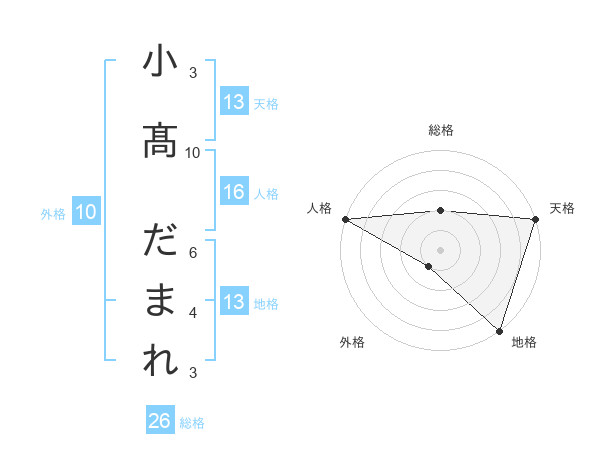 小髙 だまれさんを姓名の画数から五運を鑑定