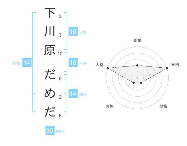 占い結果は姓名判断である以上、良い場合も悪い場合もありますが、決してお名前を誹謗中傷するものでなく、画数の自動計算によって得られたものです。また、本サイトの検索によって得られた鑑定結果で、第三者を誹謗中傷したり名誉を棄損するような行為を禁じます。