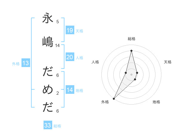 永嶋 だめださんを姓名の画数から五運を鑑定