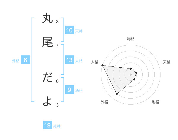 丸尾 だよさんを姓名の画数から五運を鑑定