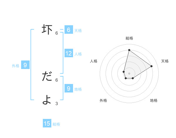 圷 だよさんの総格は15画の4点!